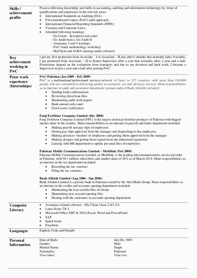 9 photos of the Sample Resume with Big 4 Tax Internexperience