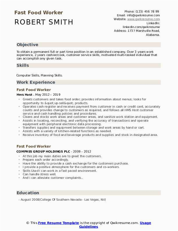 Fast Food Worker Resume Samples