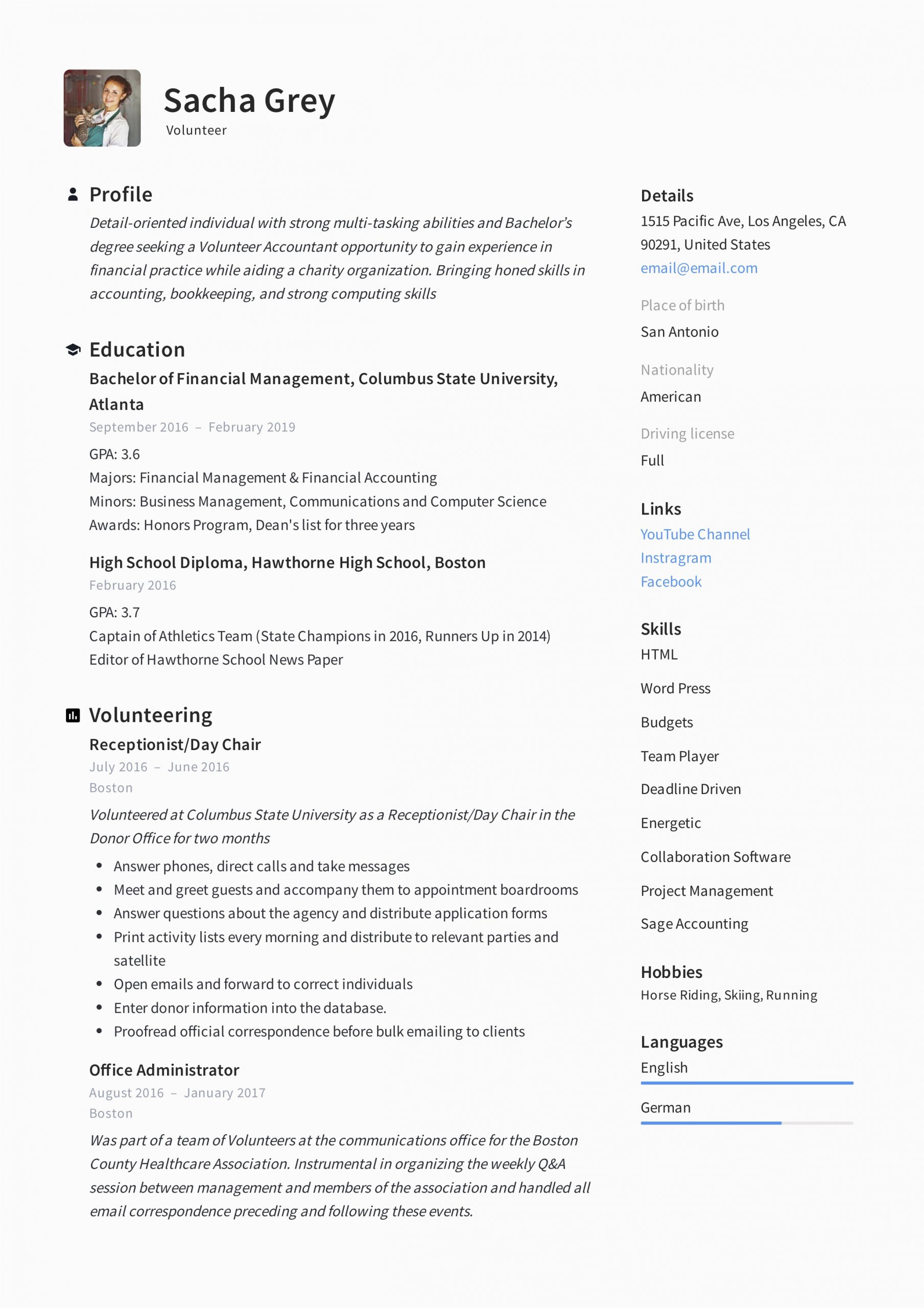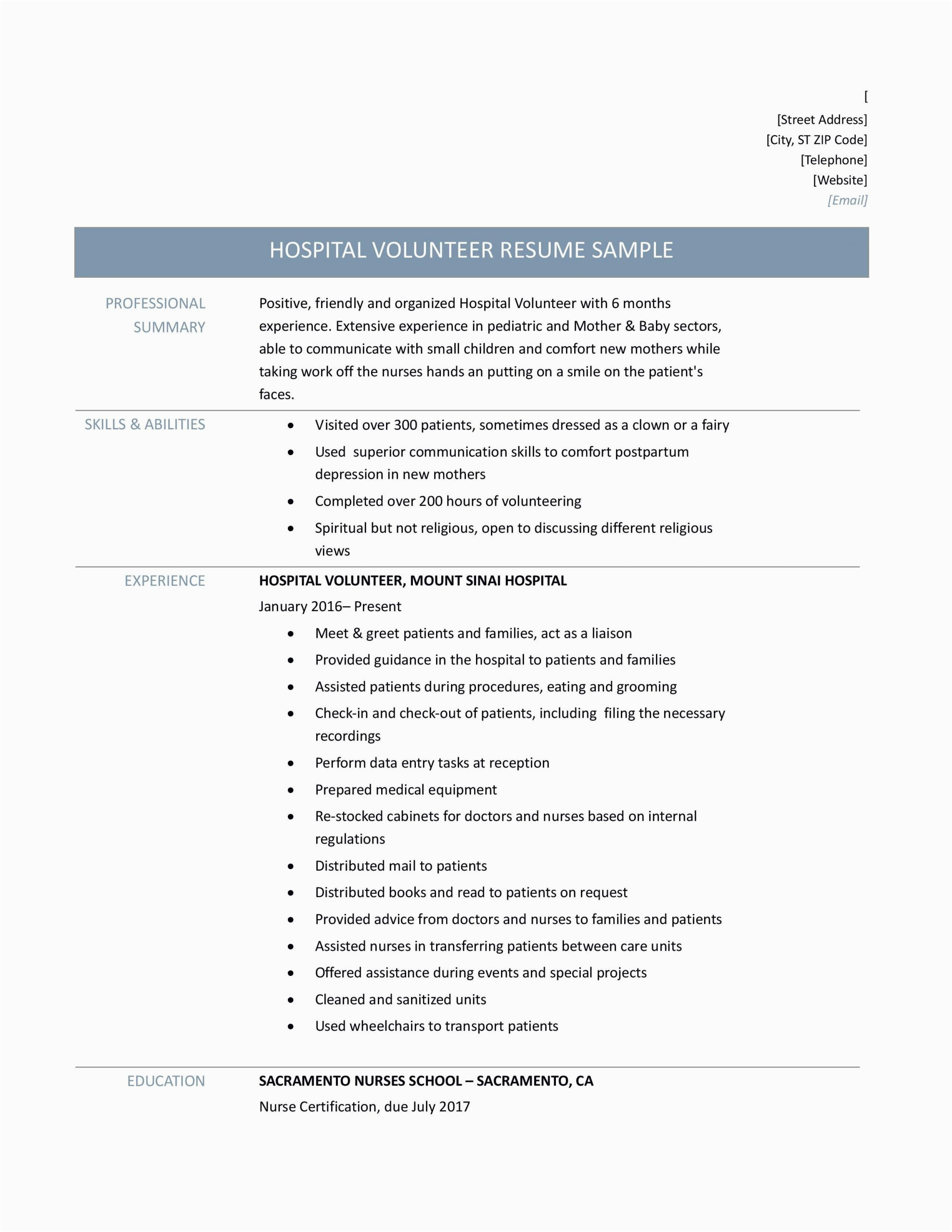 There are for that reason many options for you as you search for the absolute sample resume with volunteer work included, and taking into consideration some hard be in and perseverance on your part, you will find yourself past a first-class resume in no time, and hopefully, a first-class employer, as well!. For more instruction upon resumes or for a sample resume with volunteer work included checkout this recommended websites.