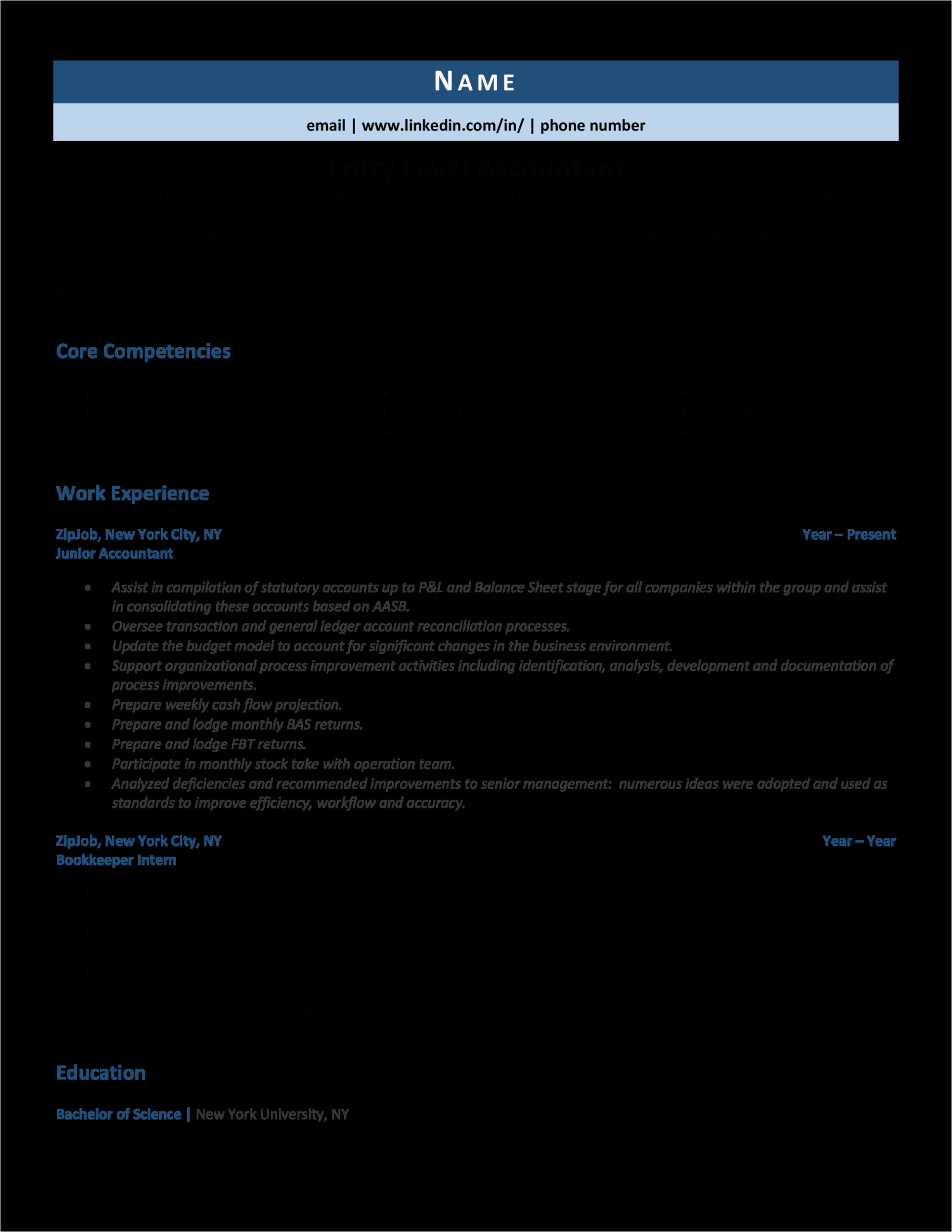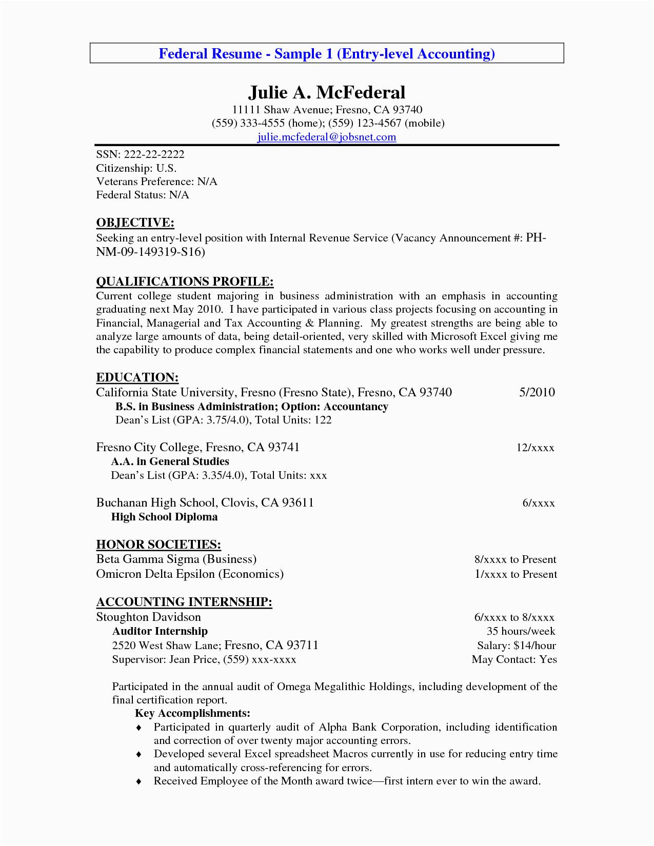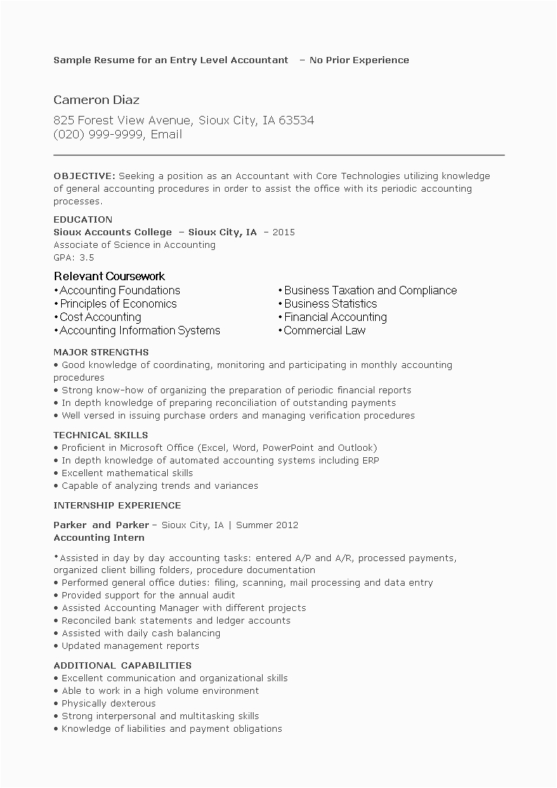Back To Sample Resumes for Entry Level Accounting Jobs
