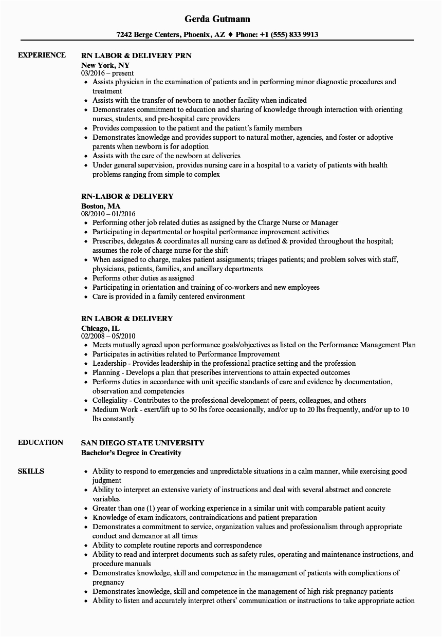 9 photos of the Sample Resumes for Labor and Delivery Nurse