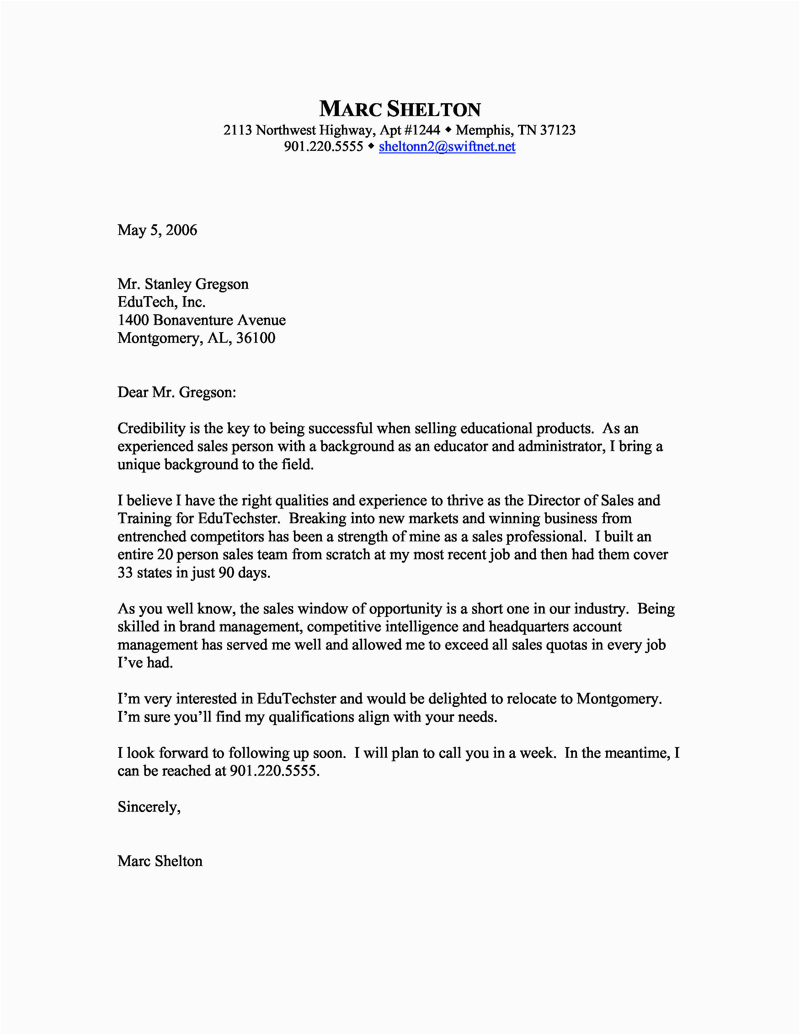 There will be many career books and guides that you can search out at the library or bookstore, which will have at least one sample sales cover letters for resumes for you to study, oftentimes more.