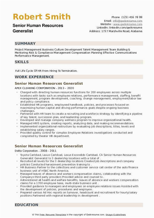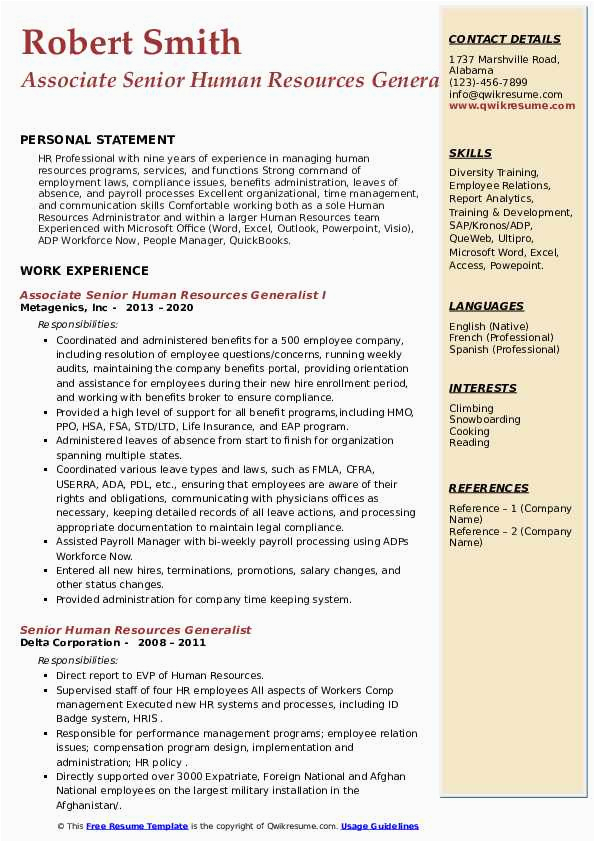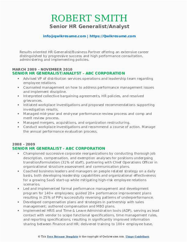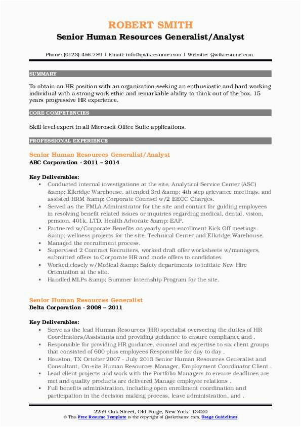 9 photos of the Sample Senior Human Resources Generalist Resume