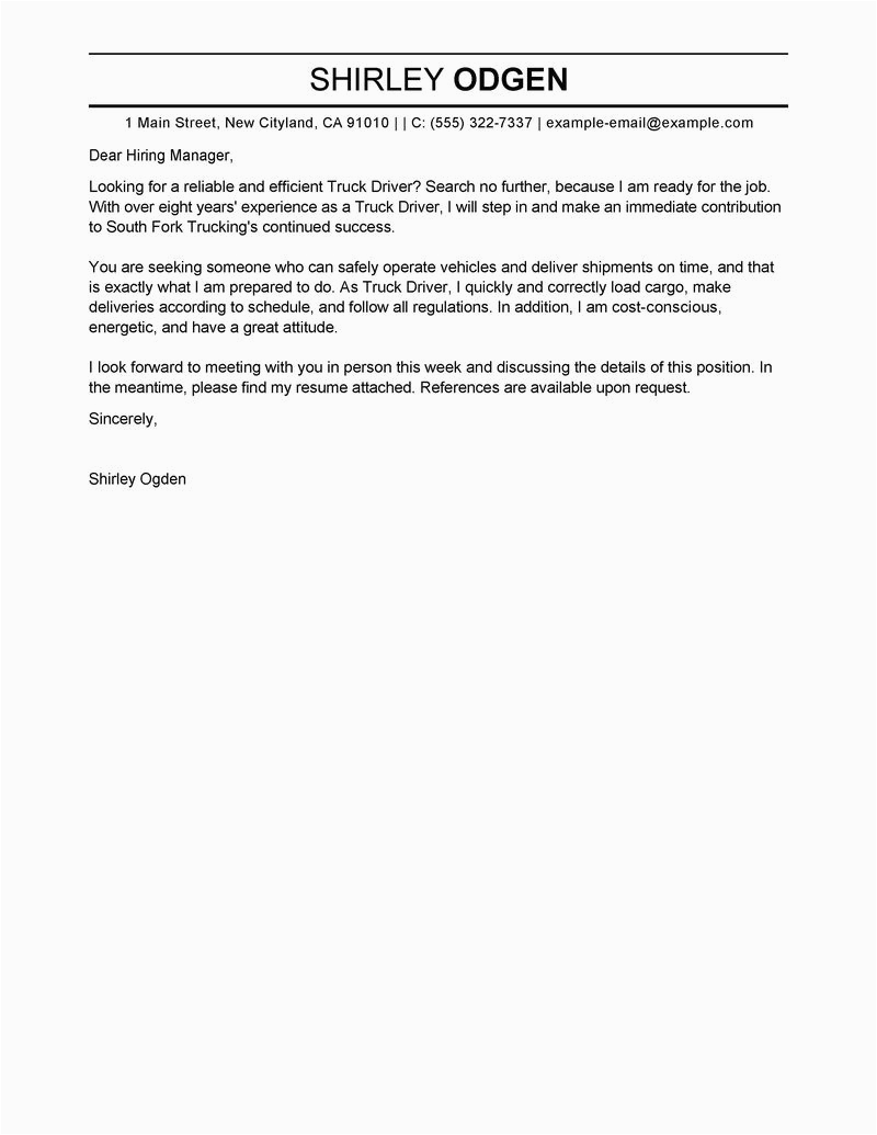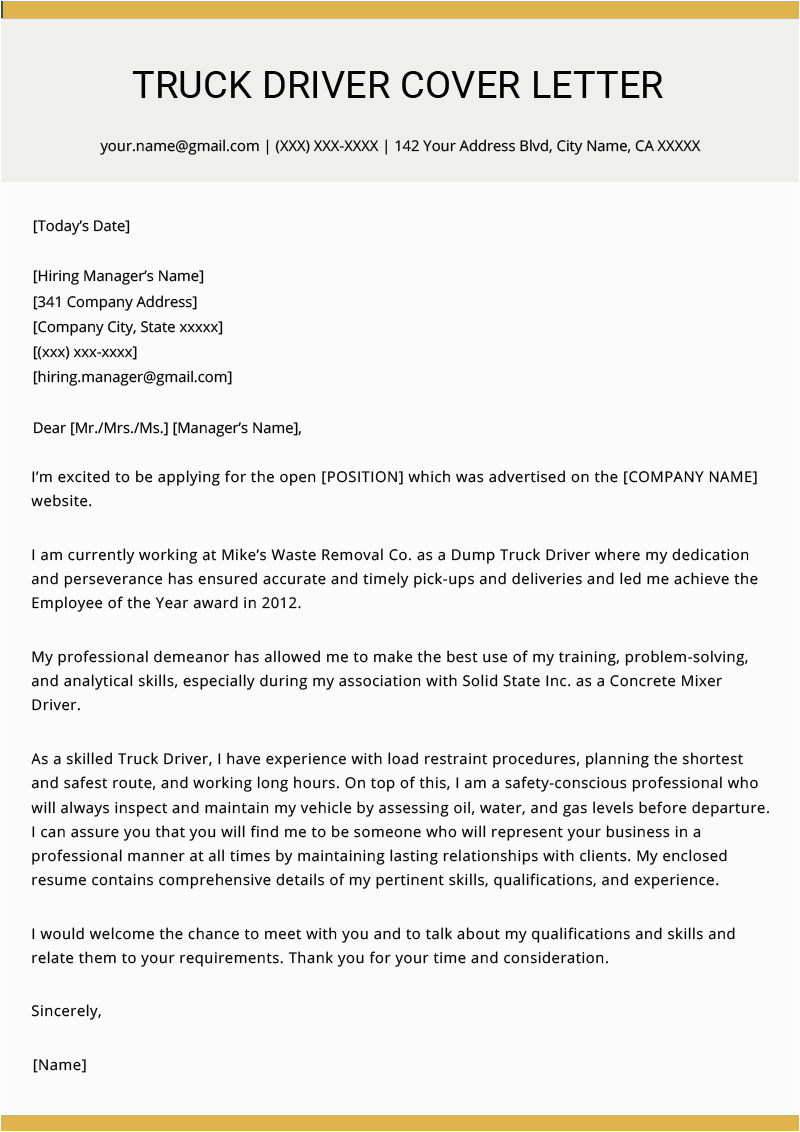There are so many options for you as you search for the absolute sample truck driver resume cover letter, and when some hard deed and perseverance on your part, you will find yourself following a first-class resume in no time, and hopefully, a first-class employer, as well!. For more counsel upon resumes or for a sample truck driver resume cover letter checkout this recommended websites.