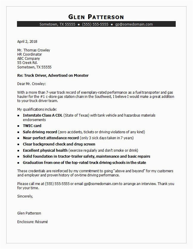 Do you have a friend or relative who has a job you venerate and a fine grasp of how to format and create a resume? Why not question them to see the resume that they used, and use that for your sample truck driver resume cover letter?