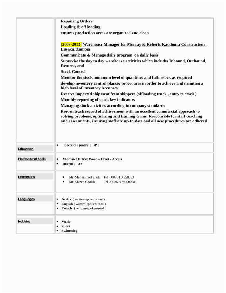 9 photos of the Samples Of Combination Resumes for Warehouse Positions
