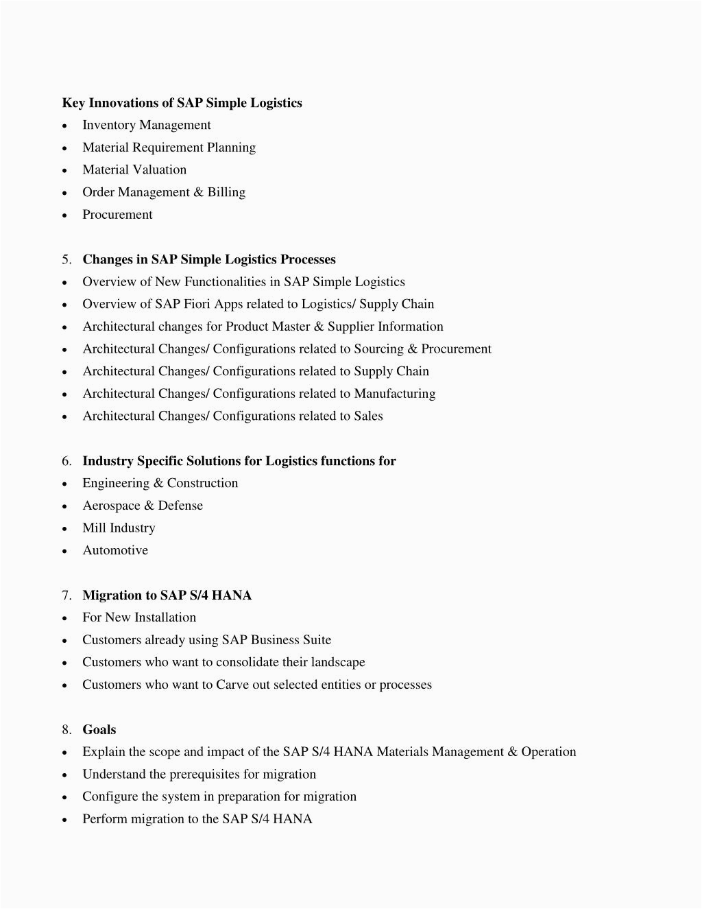 And for all website you arrive across that has a Sap S4 Hana Simple Logistics Sample Resume, you will find that there are specialized templates for just more or less any type of resume you wish to create. You can find a Sap S4 Hana Simple Logistics Sample Resume for an entry-level position, and you can locate a template for just nearly any type of job or career you are looking for.