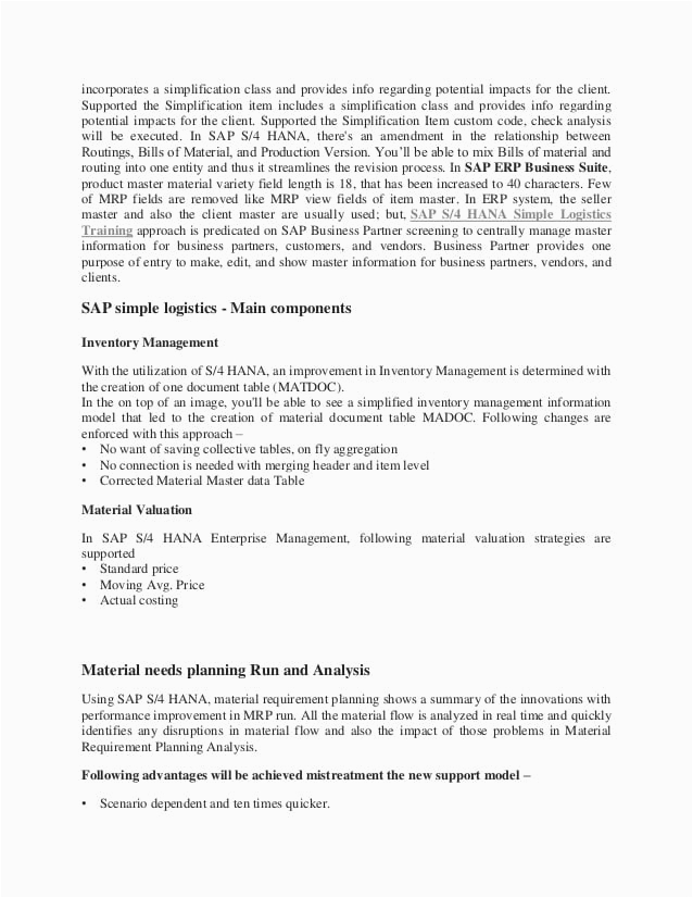 You could as well as download a template from the Internet; there are an abundance of websites where you will be skillful to find a Sap S4 Hana Simple Logistics Sample Resume, either to clearly peruse or to download and use.
