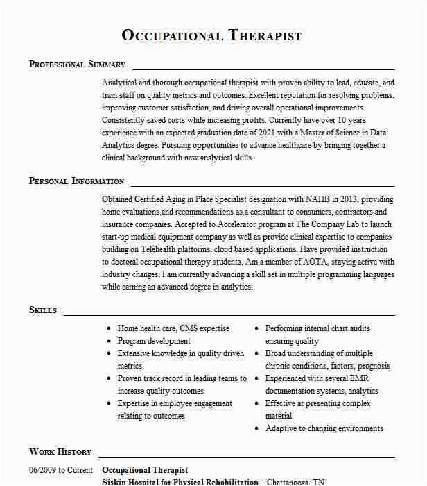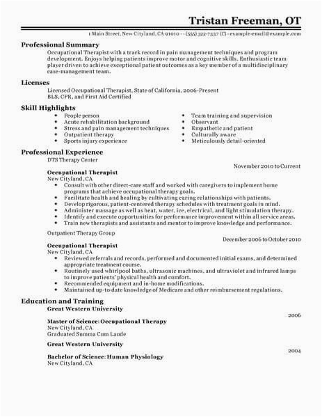 There will be many career books and guides that you can search out at the library or bookstore, which will have at least one School Based Occupational therapy Resume Sample for you to study, oftentimes more.