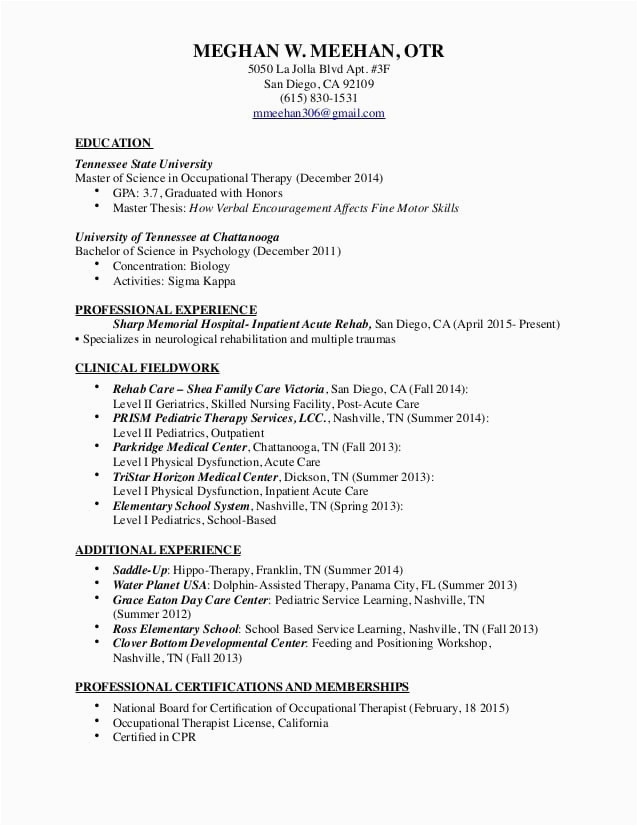 You could furthermore download a template from the Internet; there are an abundance of websites where you will be skillful to locate a School Based Occupational therapy Resume Sample, either to clearly peruse or to download and use.