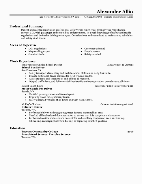 Professional Bus Driver Resume Examples Driving