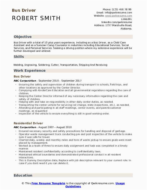 Next you are searching for the absolute job, you will of course desire to put your best foot talk to with an fabulous and well-formatted resume. One pretentiousness of assuring that you have such a resume is to download a school bus driver resume sample doc. These templates can offer you following the correct resume you are looking for or handily use them as a guide to make your own.