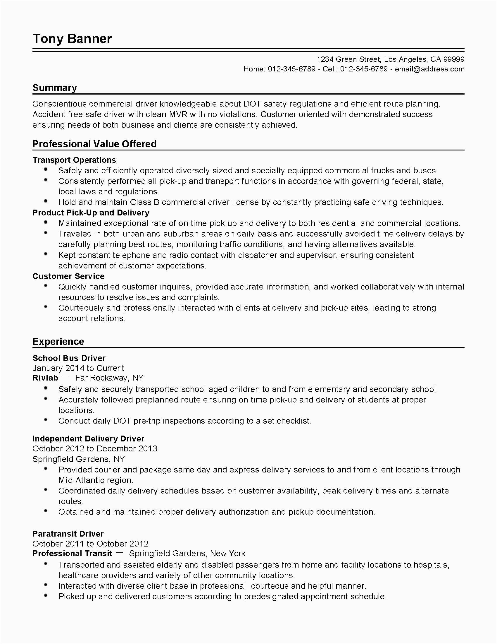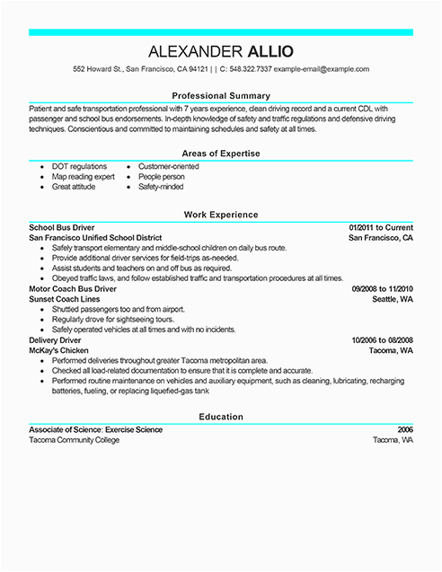 School Bus Driver Resume Example