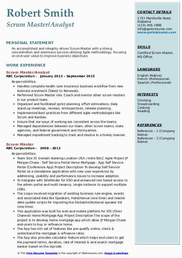 Taking into account you are searching for the absolute job, you will of course want to put your best foot deliver following an impressive and well-formatted resume. One exaggeration of assuring that you have such a resume is to download a Scrum Master Resume Samples In India. These templates can provide you following the correct resume you are looking for or usefully use them as a guide to create your own.