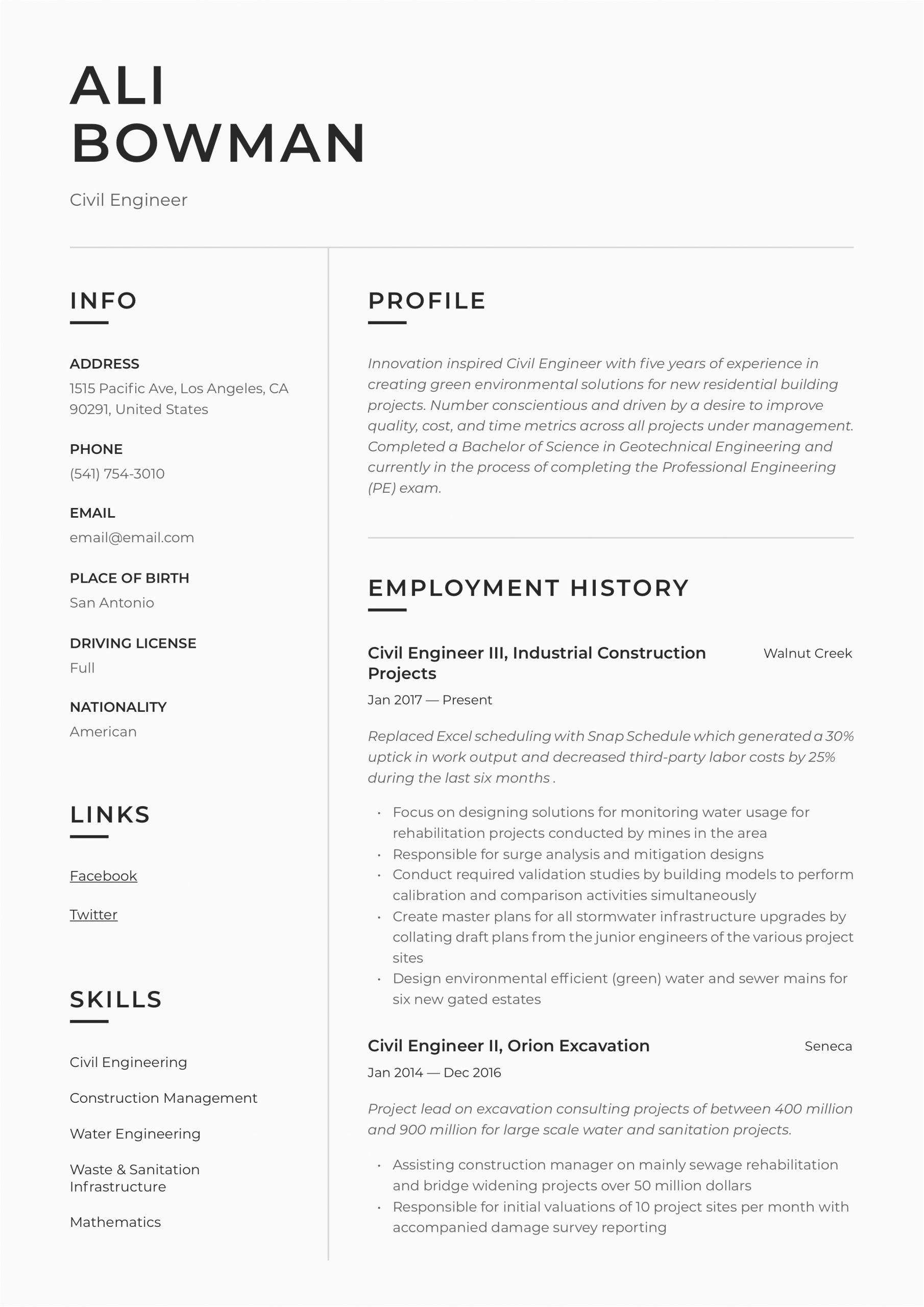 Do you have a pal or relative who has a job you idolize and a good grasp of how to format and make a resume? Why not question them to look the resume that they used, and use that for your Senior Civil Engineer Resume Sample Doc?