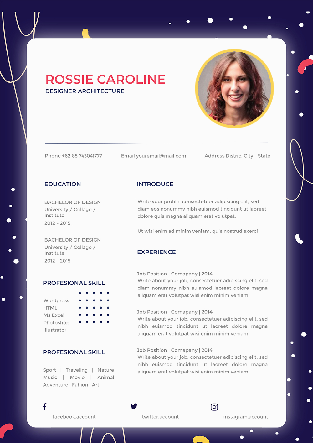 You’ll create an expose by using a template that allows the reader to say yes your resume in at a glance. A resume template is geared towards giving you a professional format, one that’s easily scanned by the reader and understandably displays your qualifications. physical concise and using simple design formatting tweaks later than grenades will permit readers to see a fast summary of your resume and then dig in. Templates are meant to have attractive formatting and presentation built in thus you don’t have to do any guess bill more or less what it’ll look good. More simple creative resume template free download samples, you can look as below.