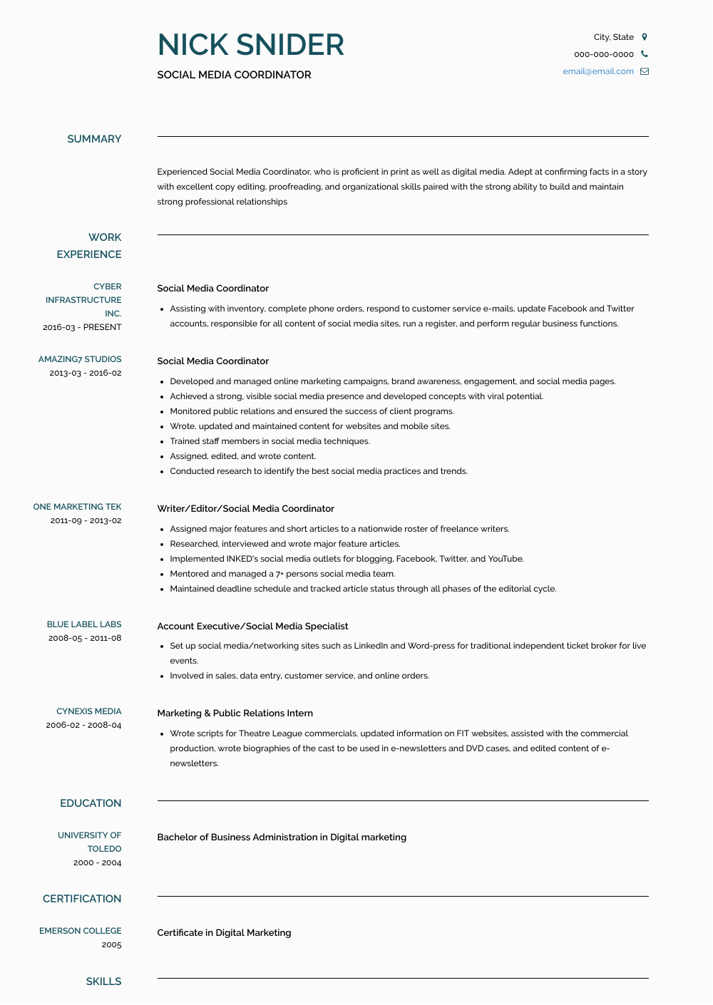 9 photos of the Social Media Coordinator Resume Samples Skills