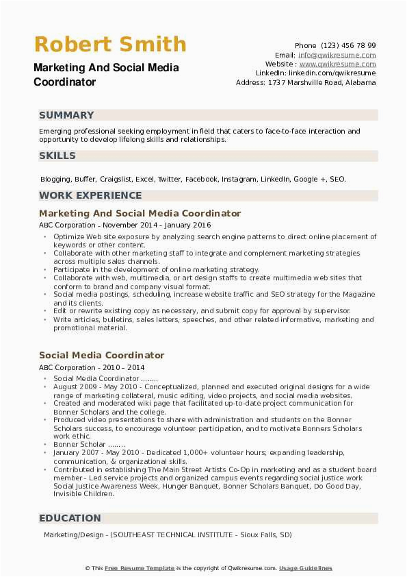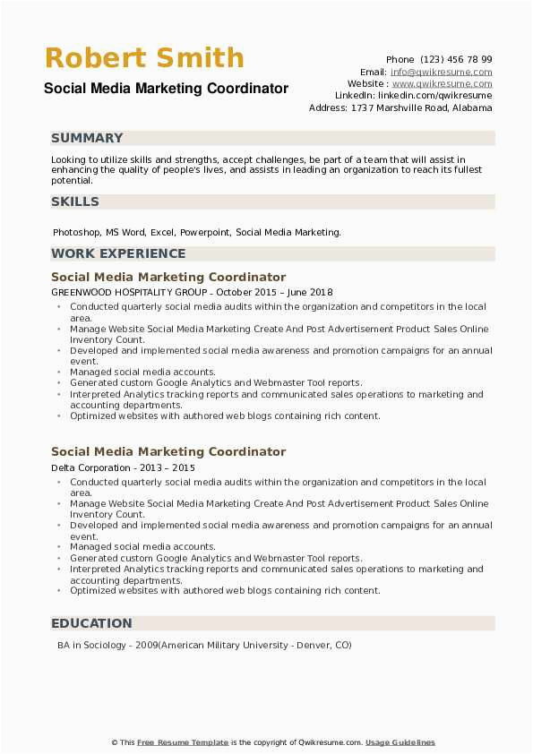 9 photos of the Social Media Marketing Coordinator Resume Sample