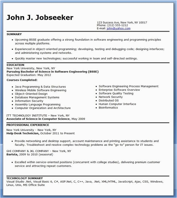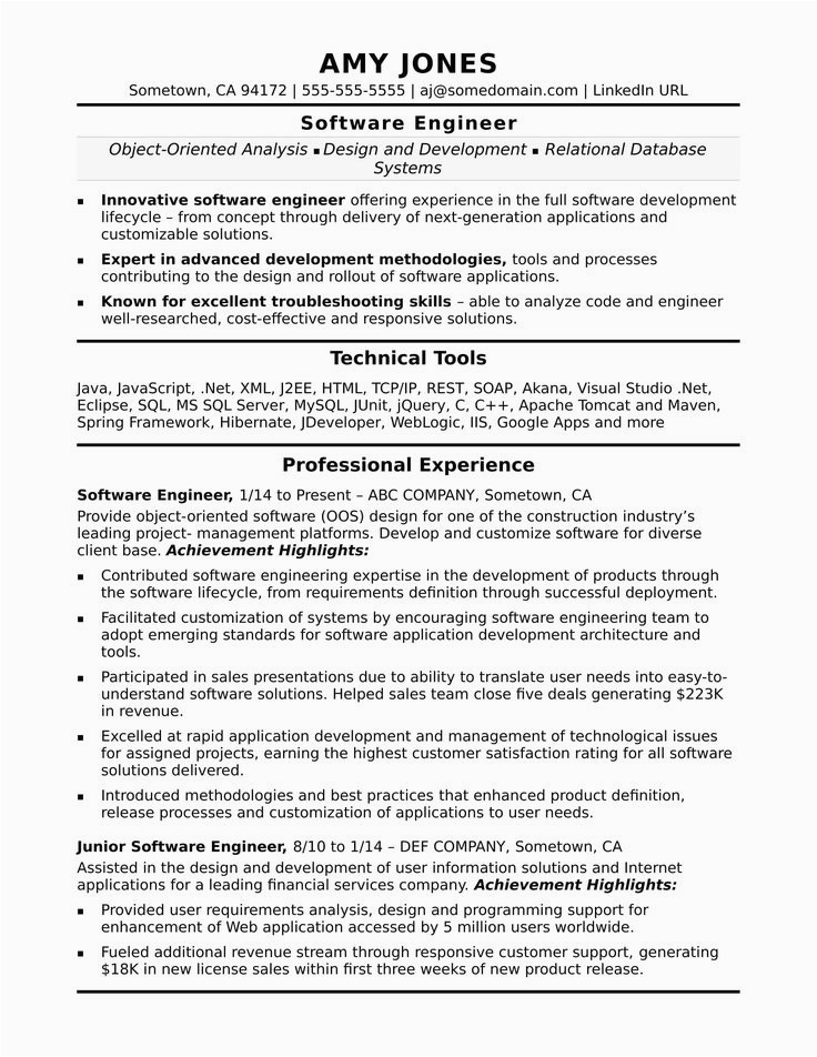 Back To Software Engineer Sample Resume No Experience