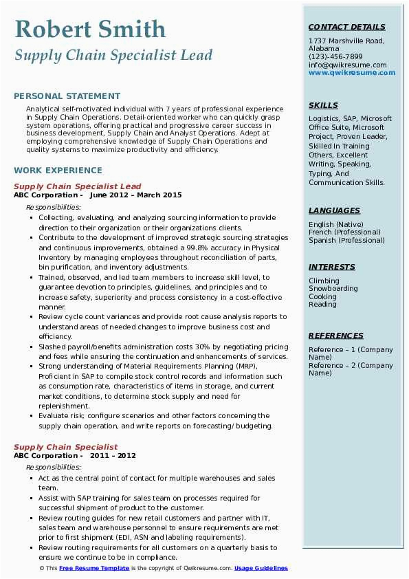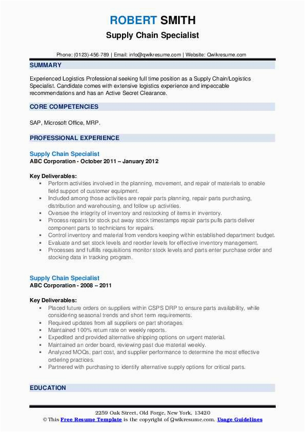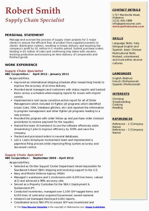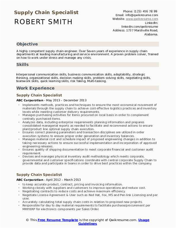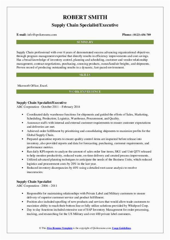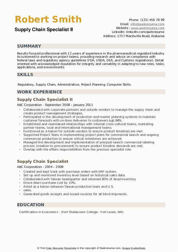 9 photos of the Supply Chain Specialist Job Resume Sample