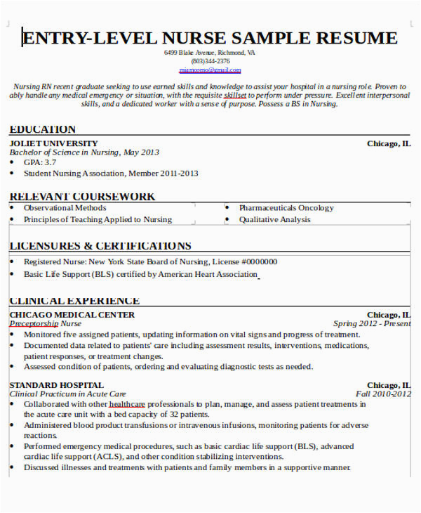 Sample Resume for Fresh Graduate Nurses with No Experience