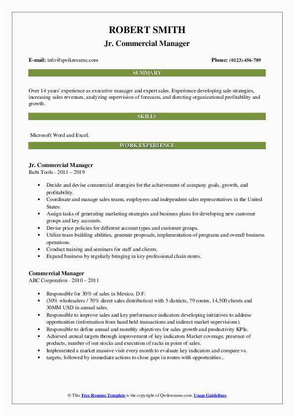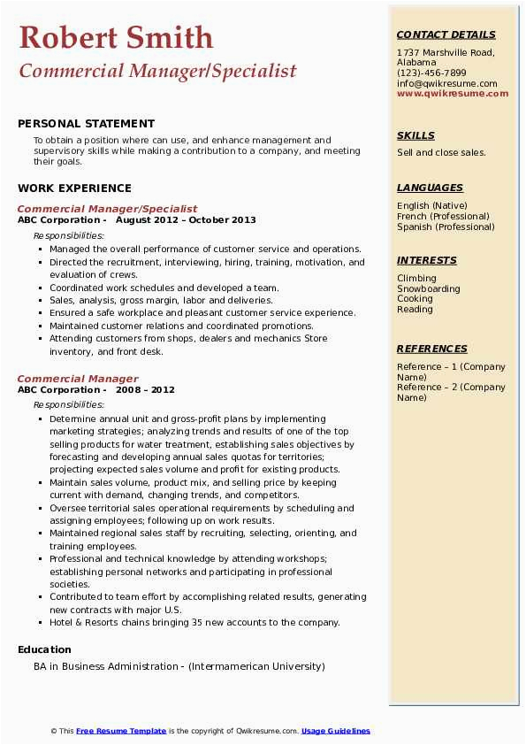 Sample Resume for Commercial Manager In India