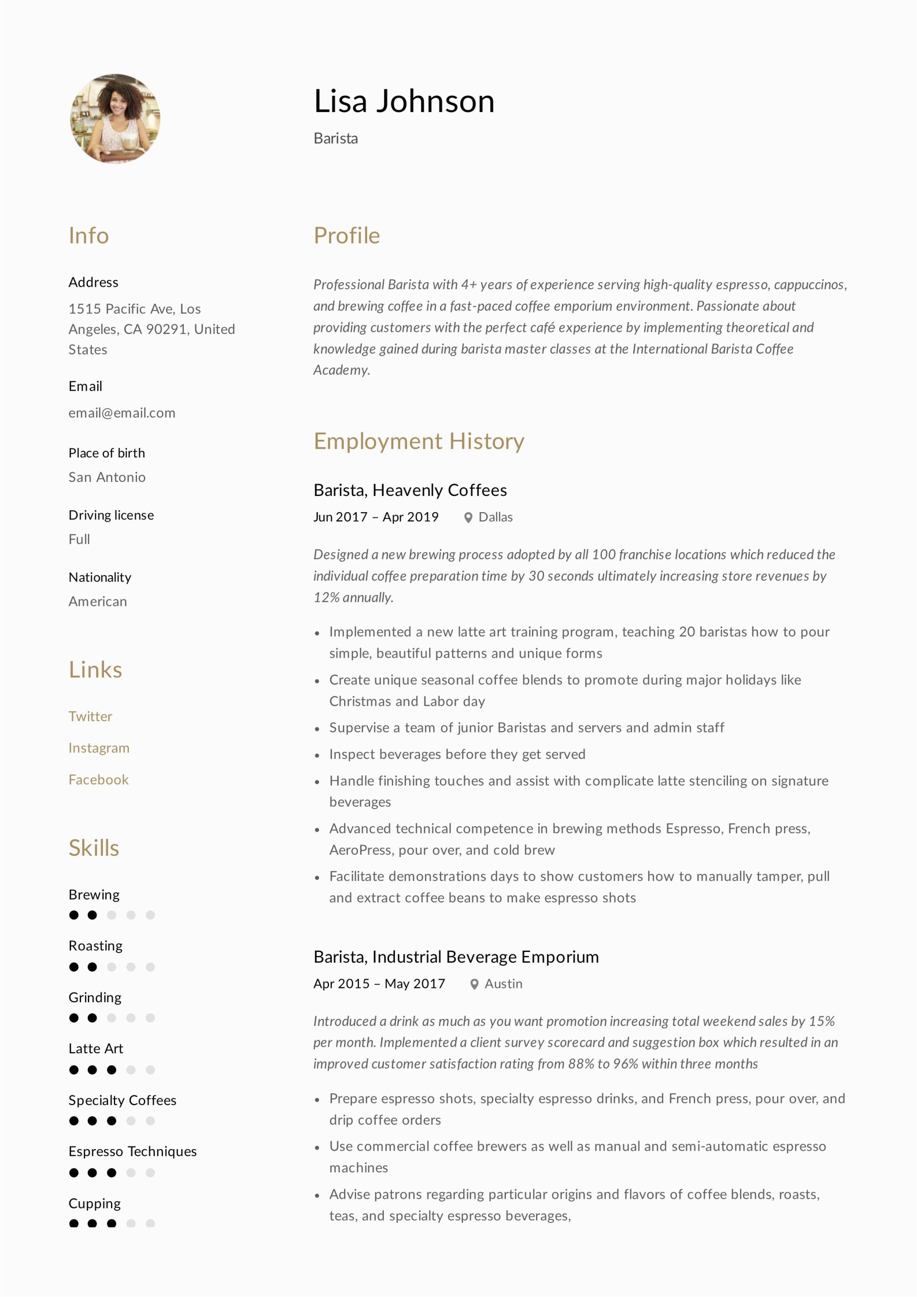 Sample Resume for Coffee Shop Barista