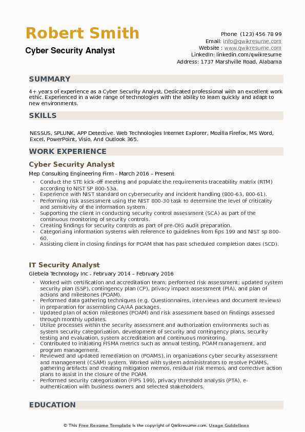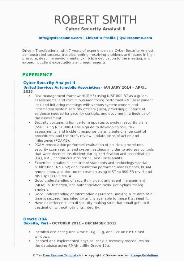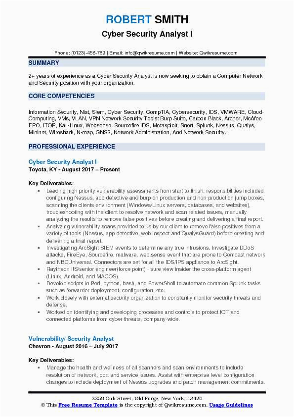 Sample Resume Of Cyber Security Analyst with Job Descriptions