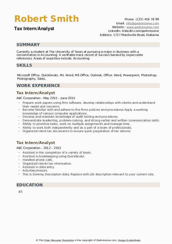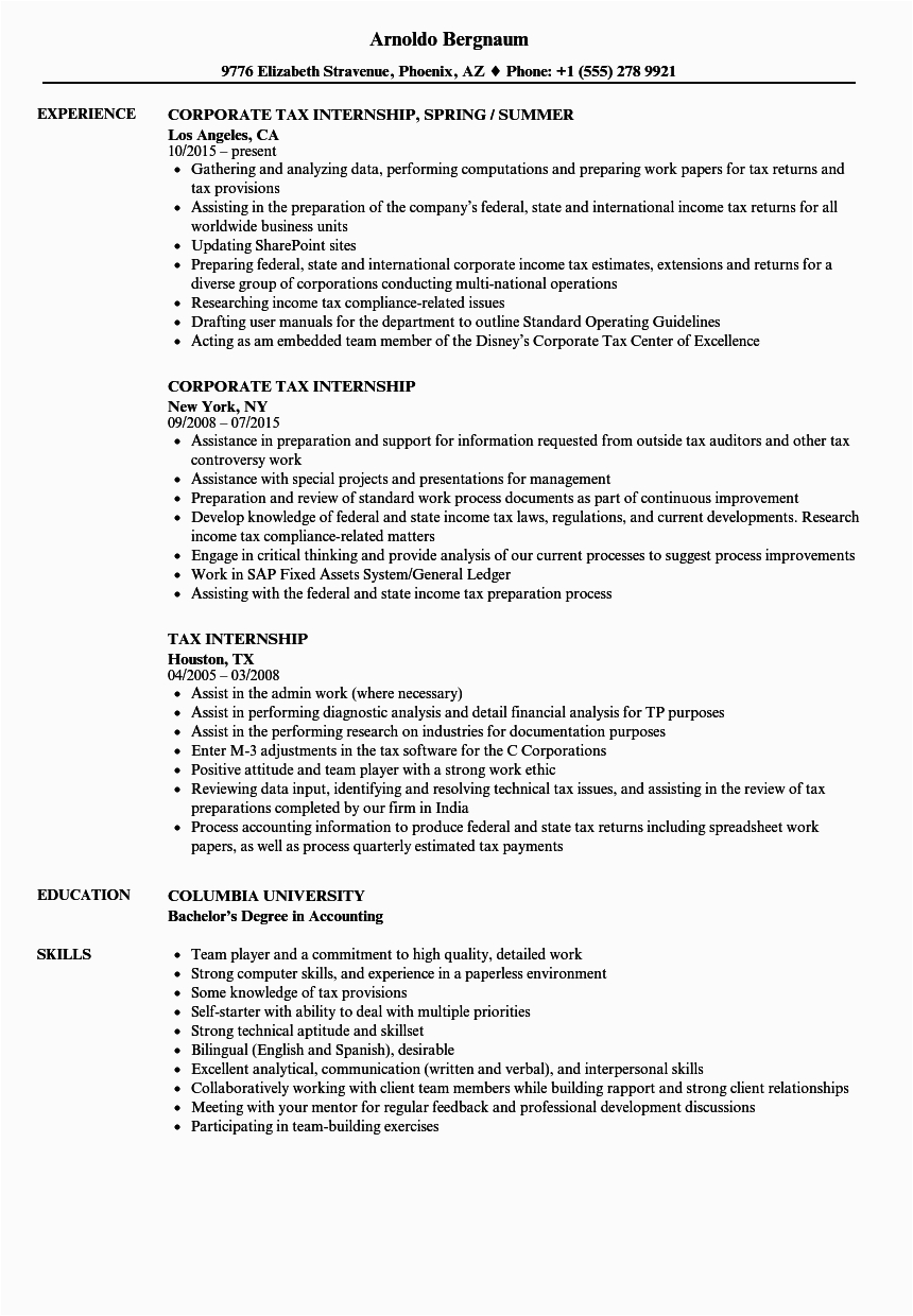 9 photos of the Tax Internship Description for An Resume Sample