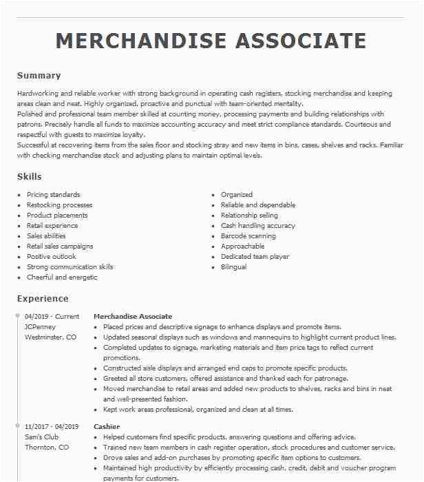 Merchandise Associate Resume Example Tj Maxx San