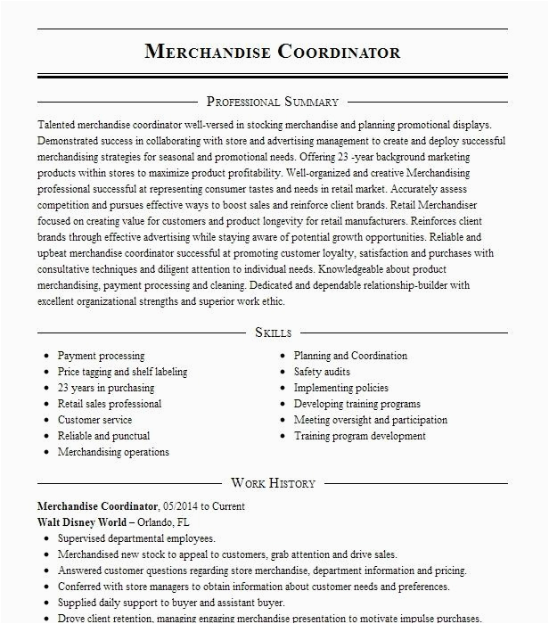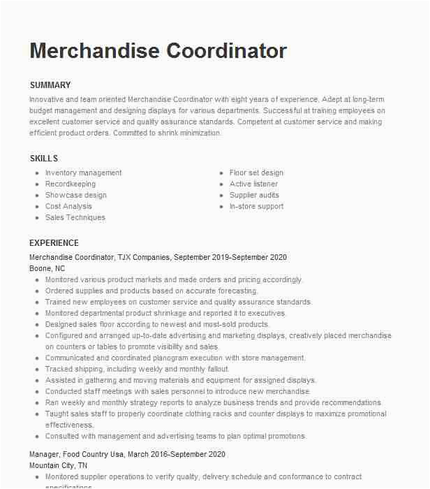 Merchandise Coordinator Resume Example T J Maxx