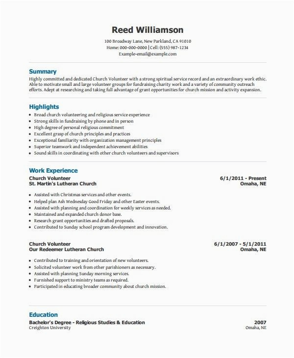 Church Volunteer Resume Examples RESTUME