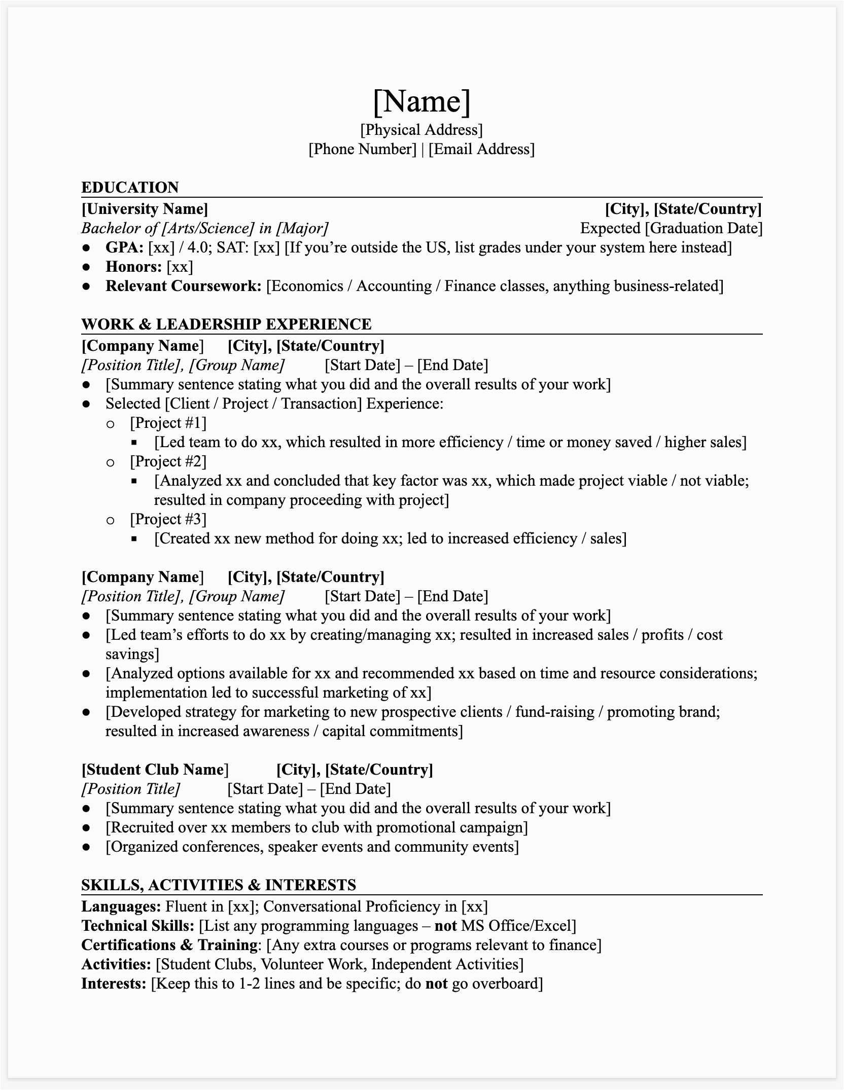 Academic Graduate School Resume Template