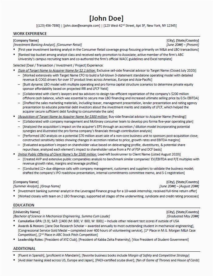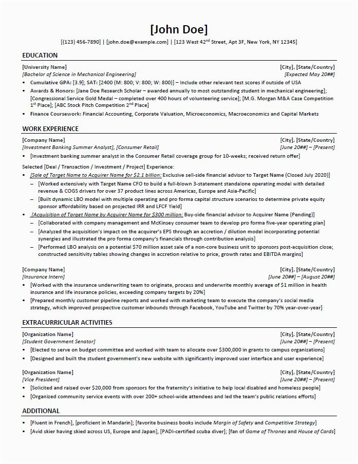 Investment Banking Resume Template and Example