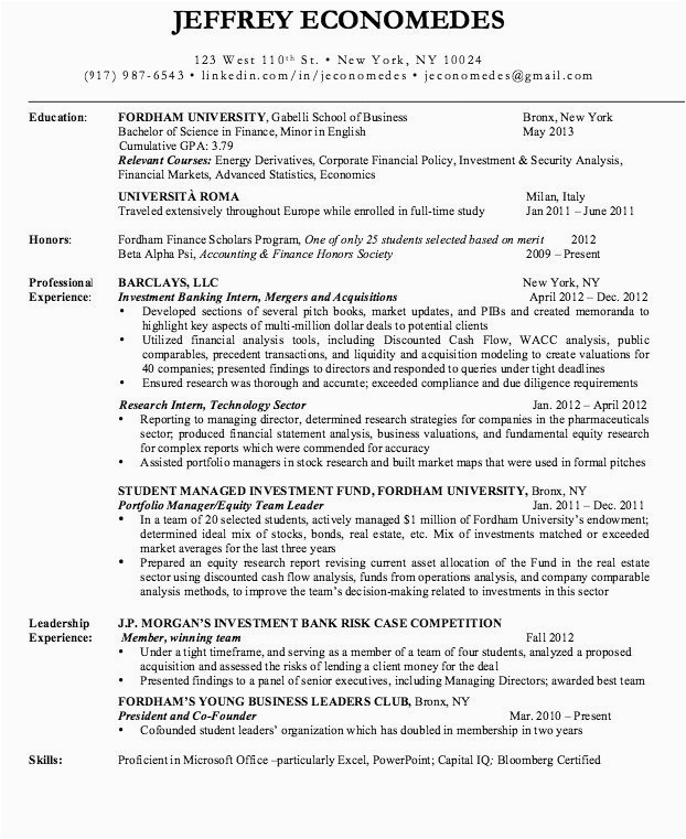 Investment Banking Resume Sample Inspirational Private