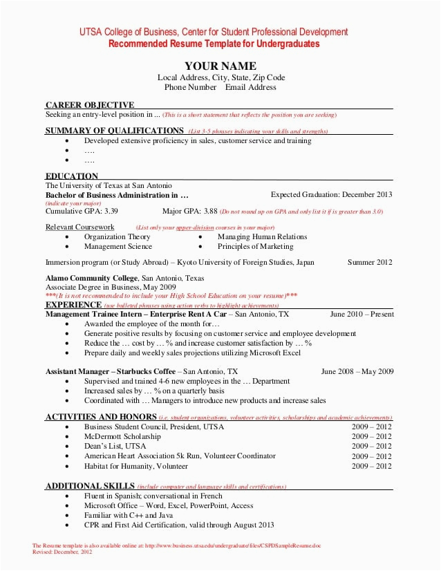 Utsa College Of Business Resume Template downloads can be a lifesaver considering you look how cooperative they can be. The assist of using them are numerous. They save time, pay for fine formatting, presentation, and can encourage you push yourself professionally. The idea of publicity is creating a lasting impression. Your resume markets you!