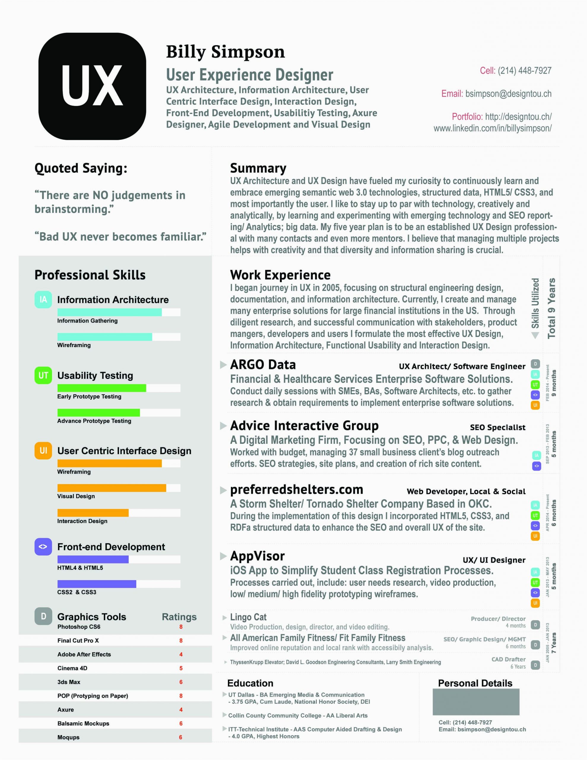 Back To Ux Designer Resume Template Free Download