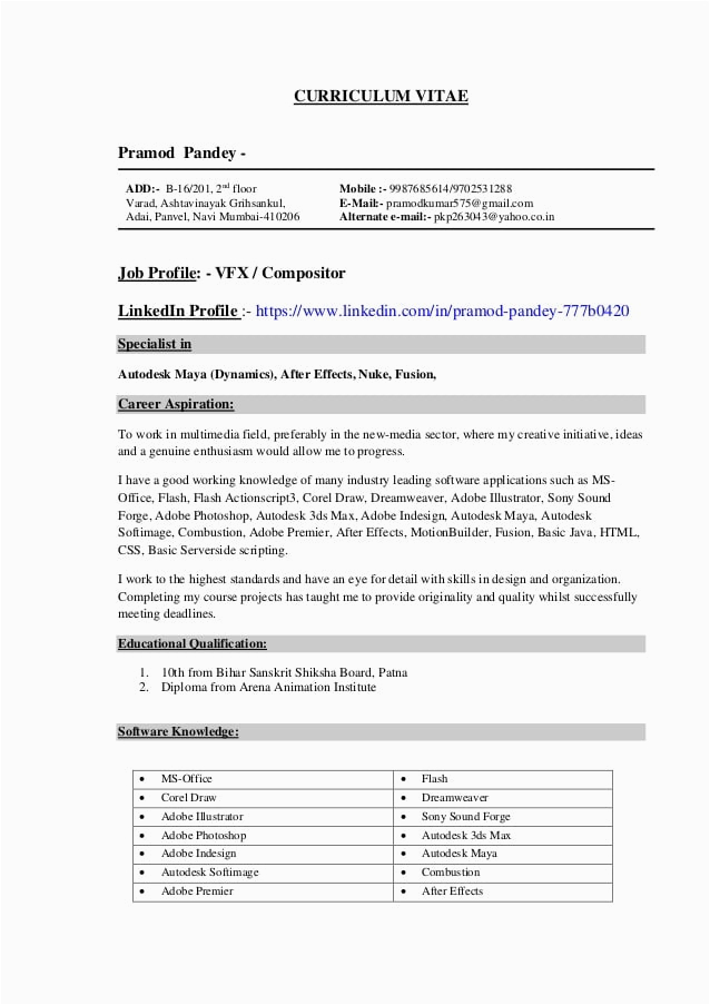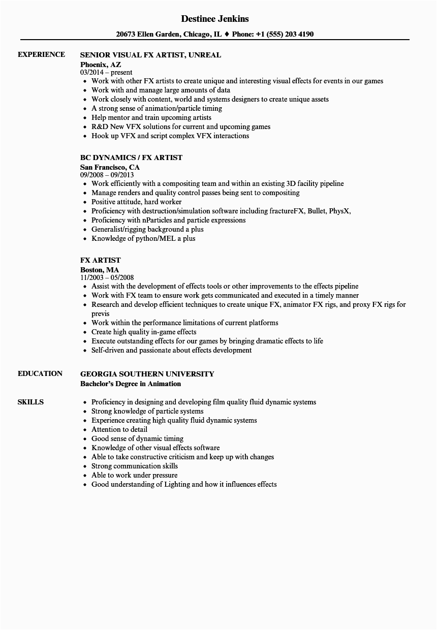 Back To Vfx Artist Resume Template Free Download