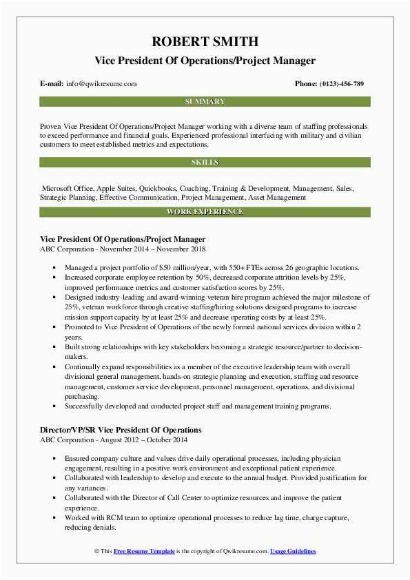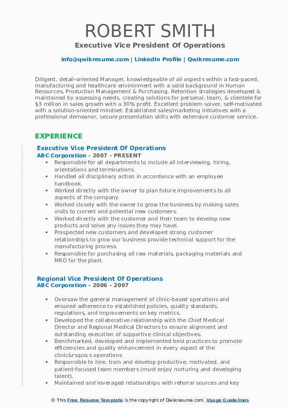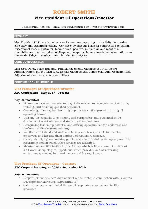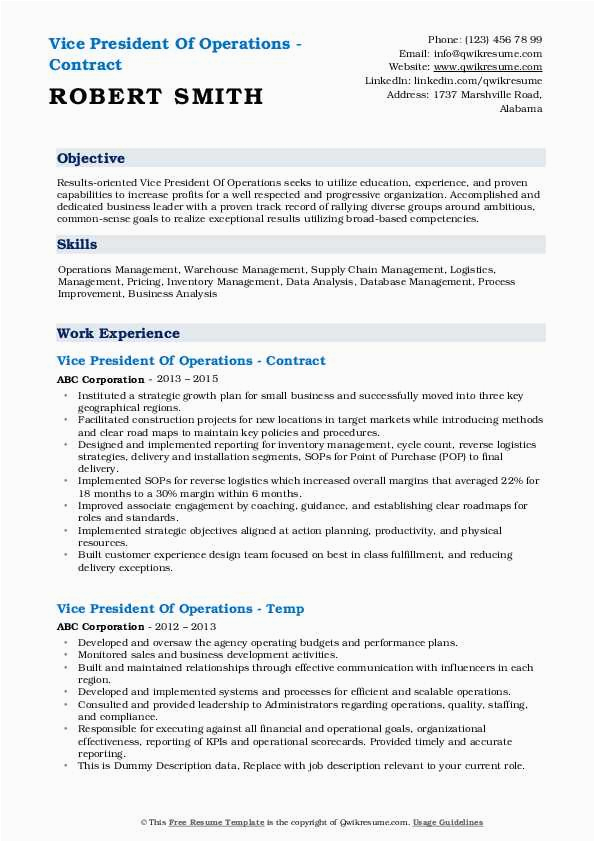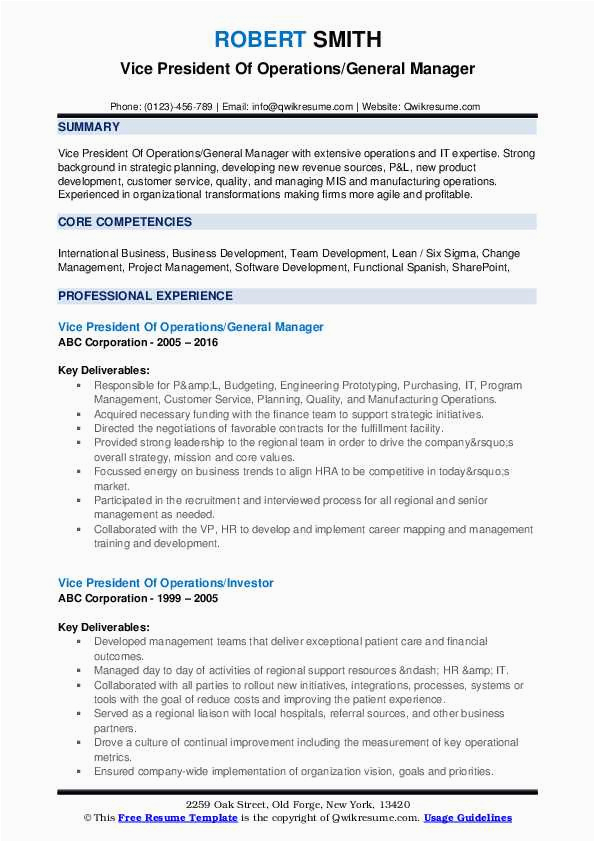 9 photos of the Vice President Of Operations Sample Resume